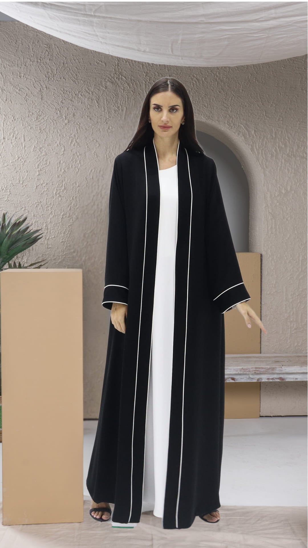 أناقة الأنابيب البيضاء الجريئة الجذابة تبرز الصورة الظلية السوداء للعباية التي لا تشوبها شائبة والتي قد يقع في حبها أي شخص