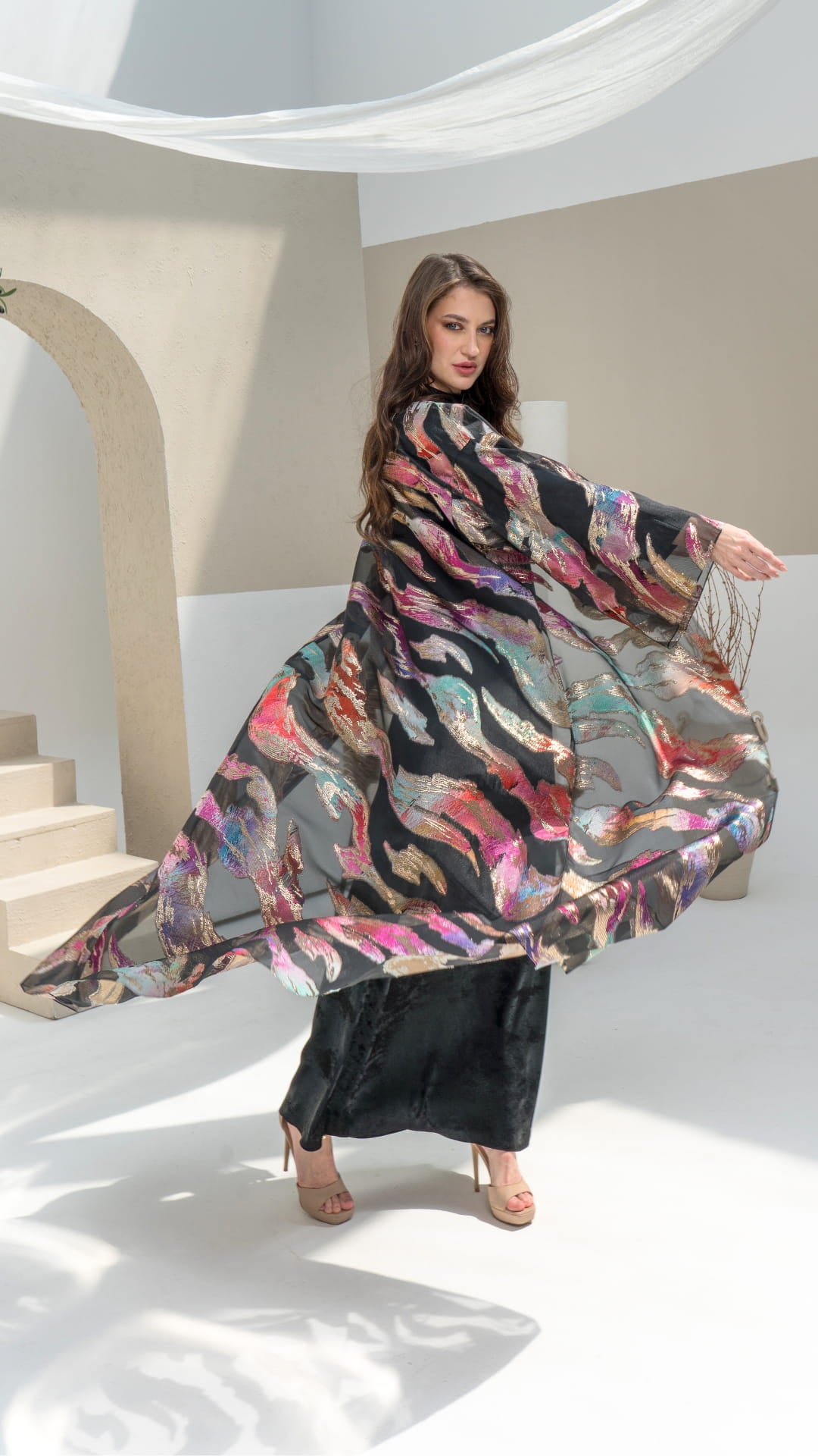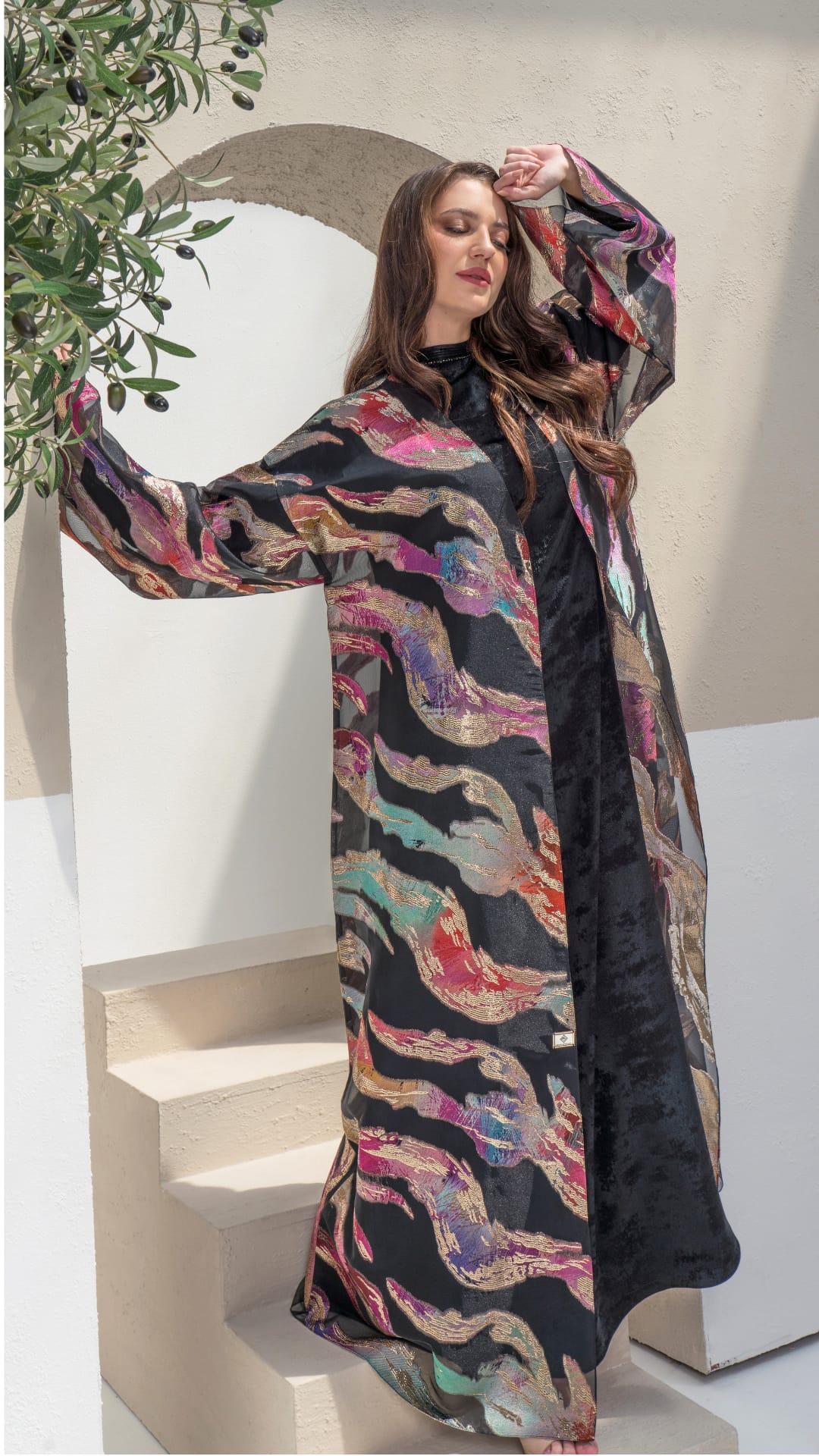 تمتعي بجمالك واحتضني ثقة الديفا بداخلك مع عباية آيا، وهي عباية شفافة أنيقة، وهي طبقة مثالية للأناقة الجريئة!