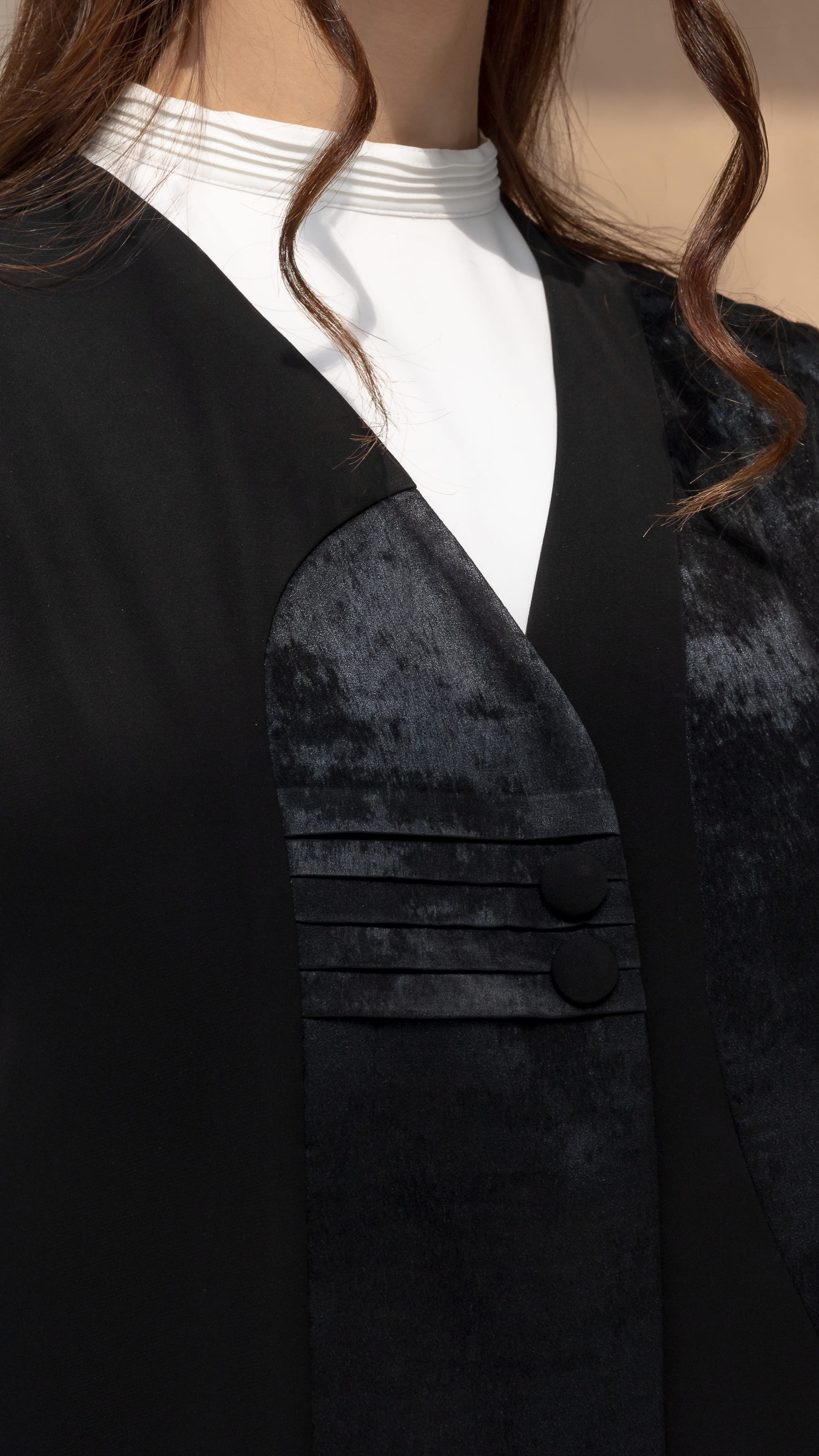 تفاعل جريء بين المنحنيات والطبقات، يمزج بين اللون الأسود الكلاسيكي والفن المعاصر مع لمسات المخمل الفاخرة على الجهة الأمامية&