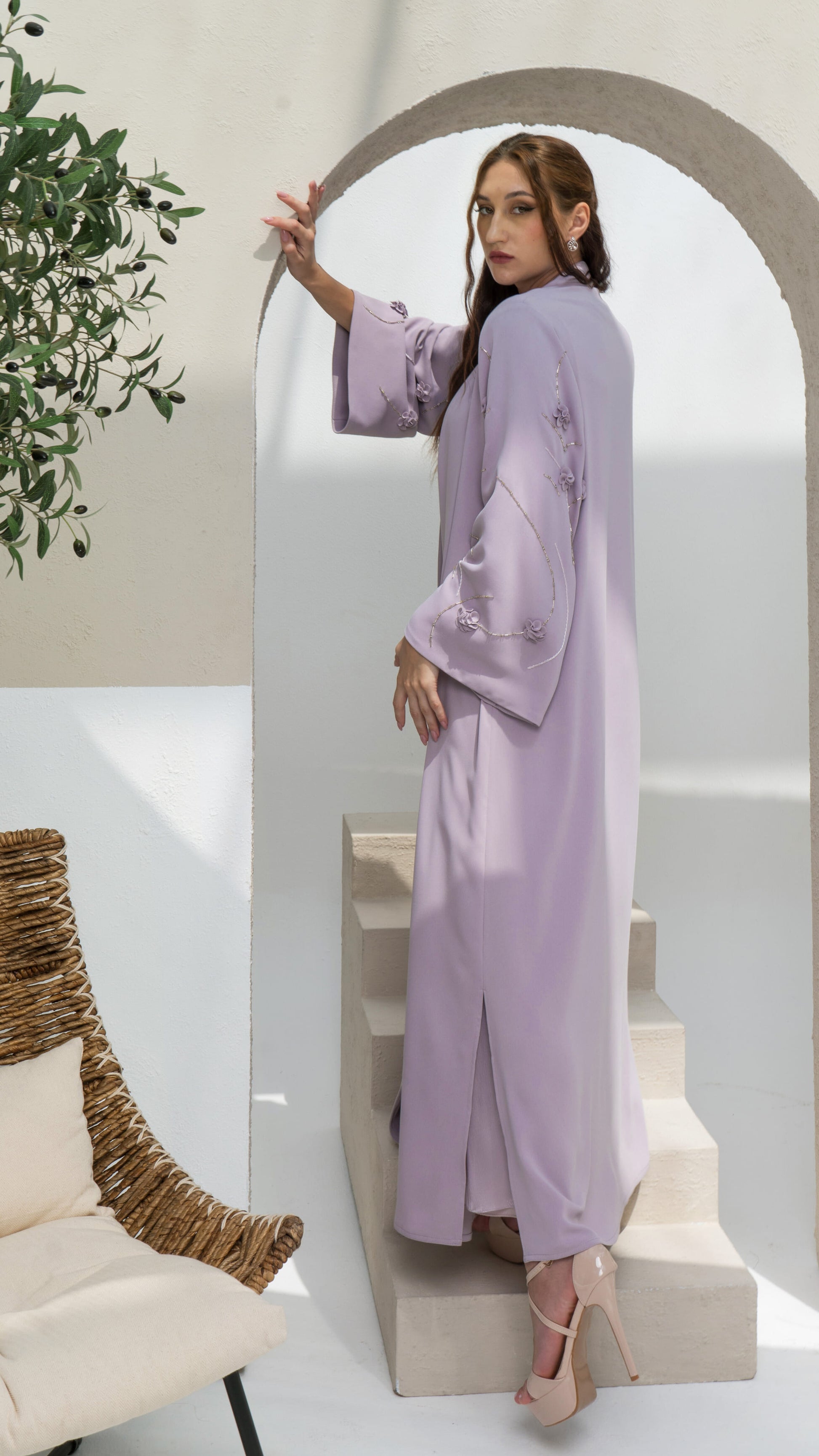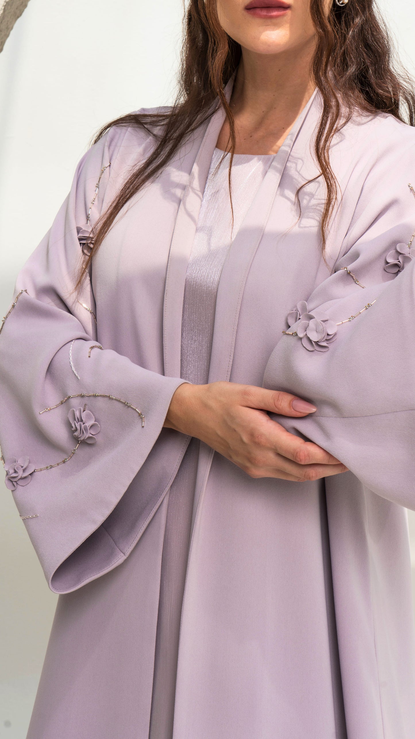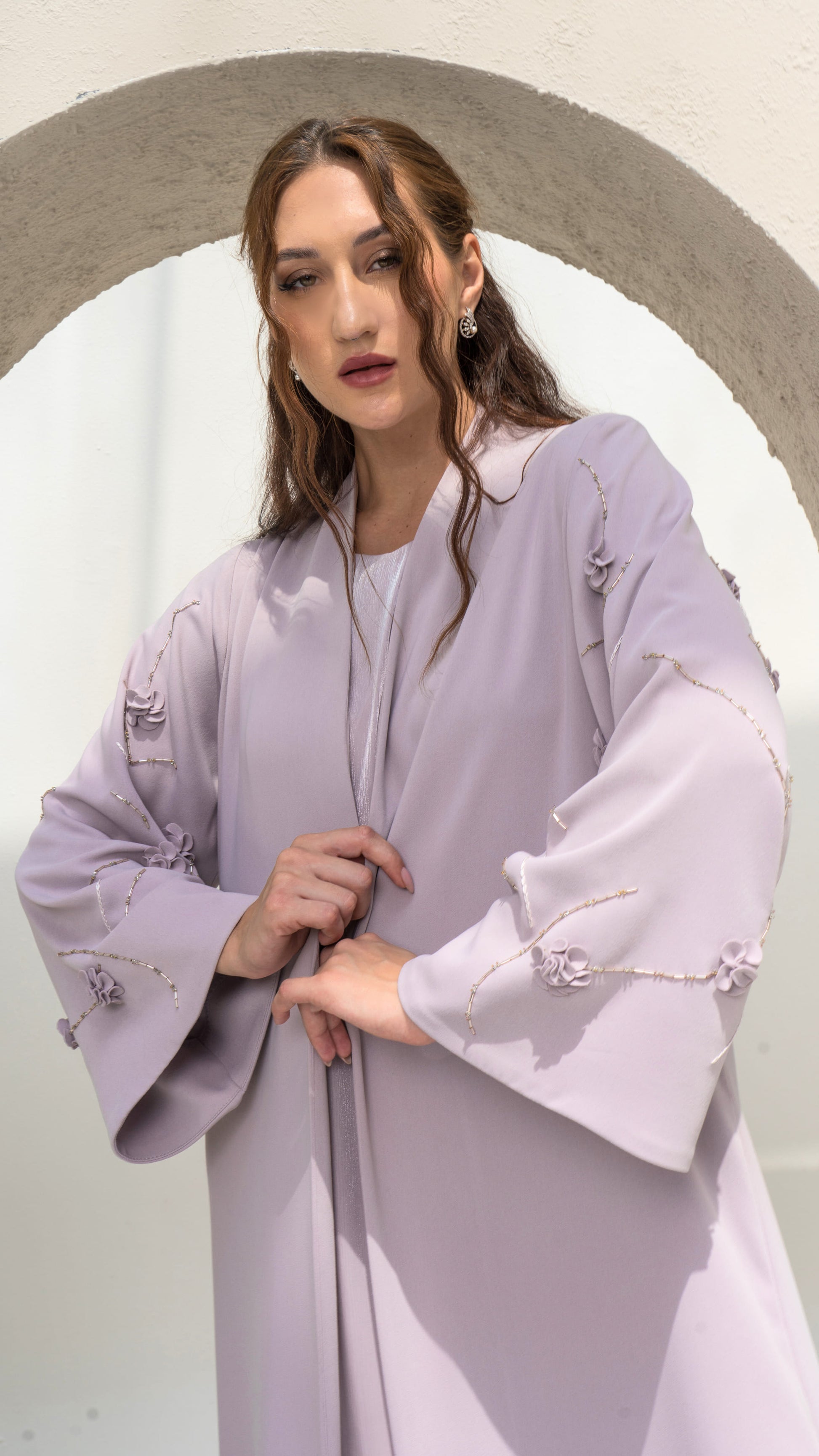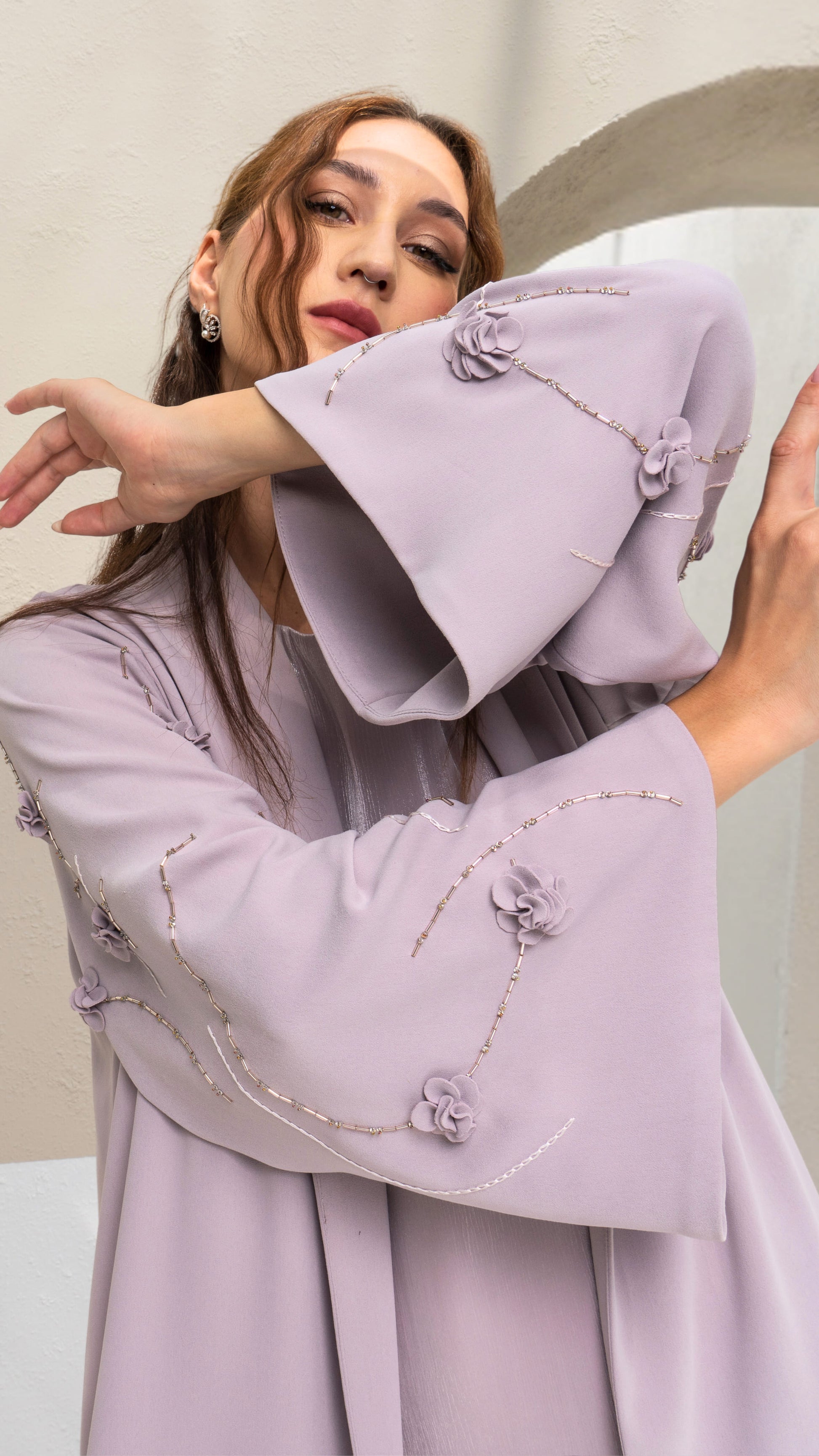 Immerse yourself in the beauty of our Dana abaya, where 3D motifs are meticulously crafted to exude a refined sense of artistry and grace, perfect for any occasion where elegance is paramount.