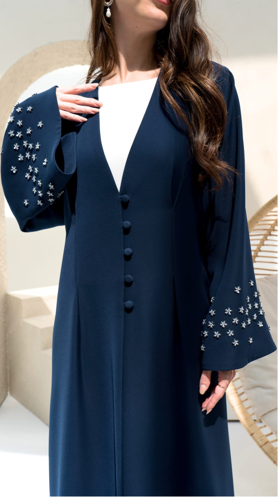Celebrate artistry and perfect craftsmanship with Hiba Abaya's harmonious blend of contrast and charm for the modern sophisticate