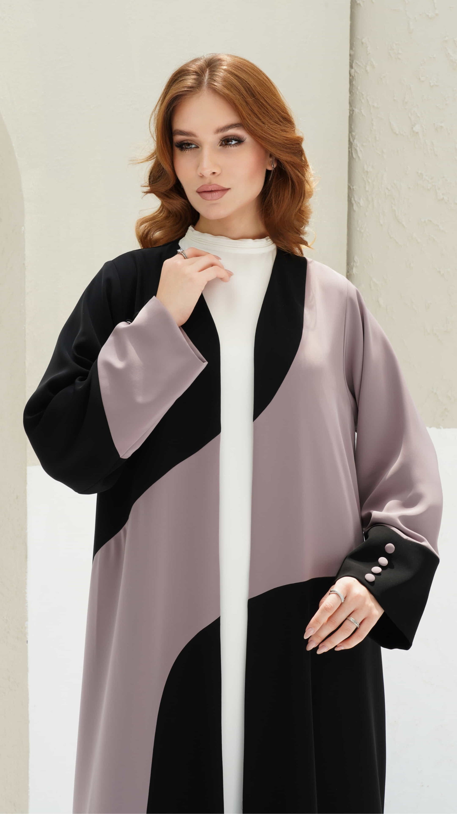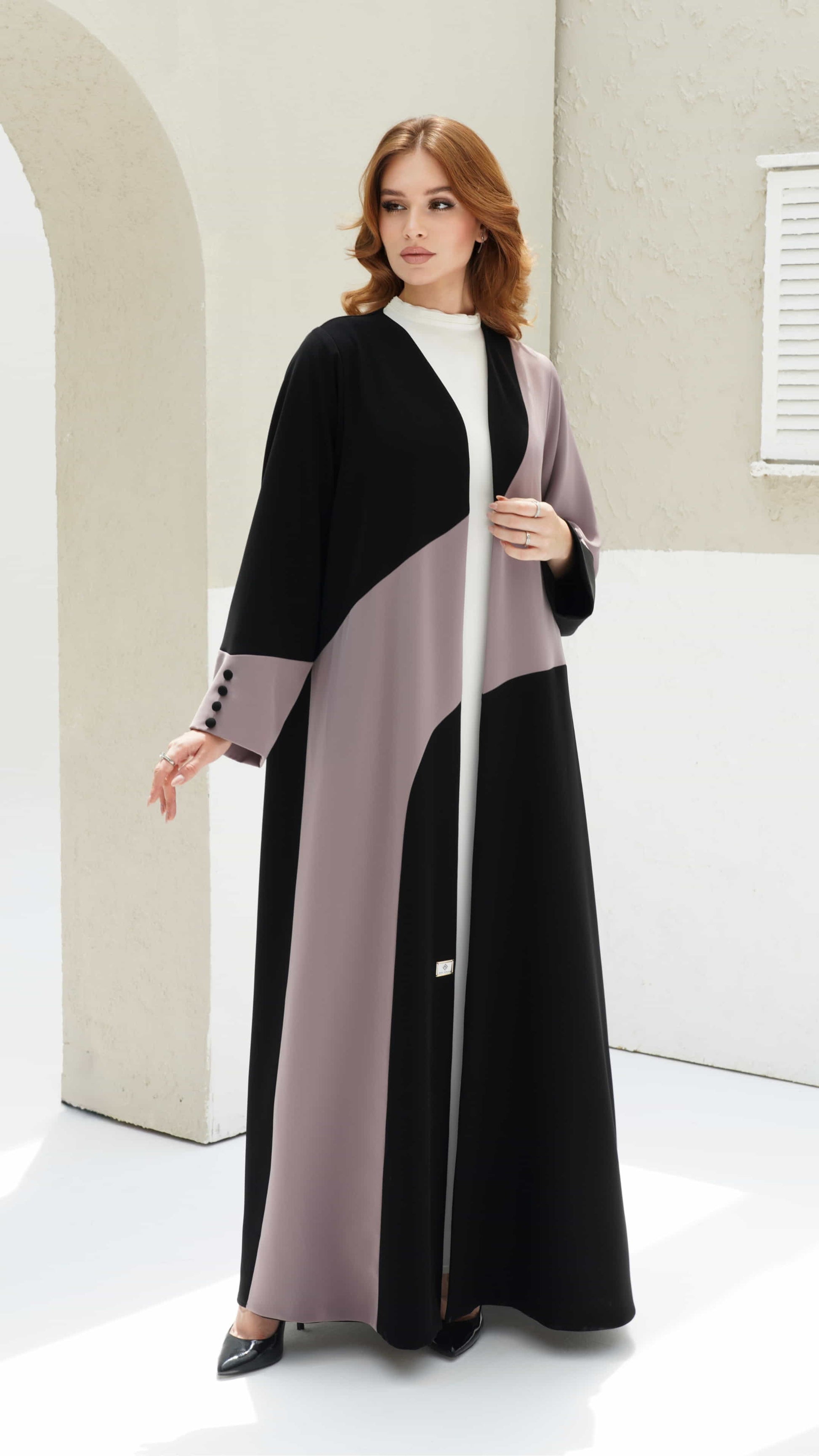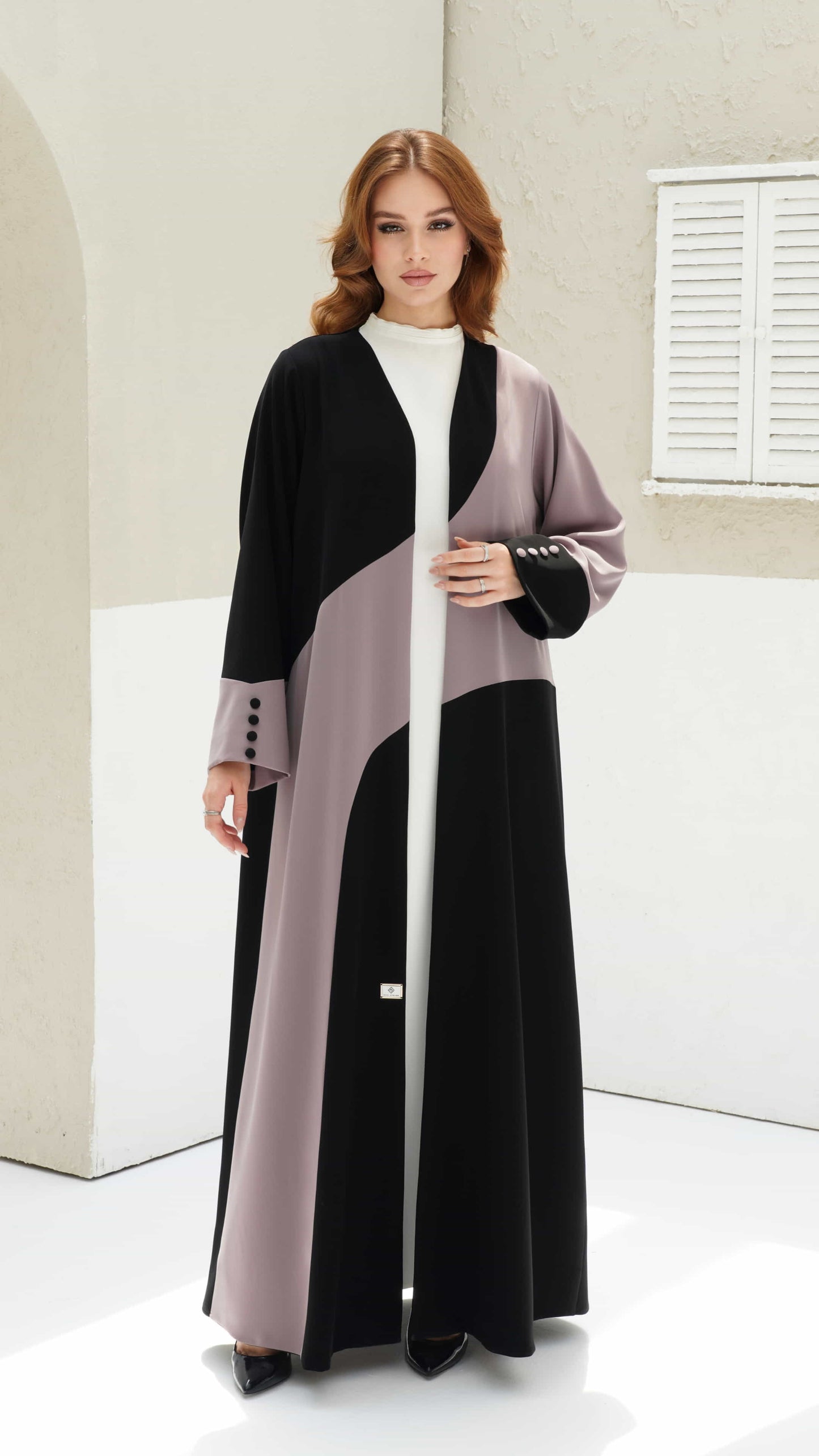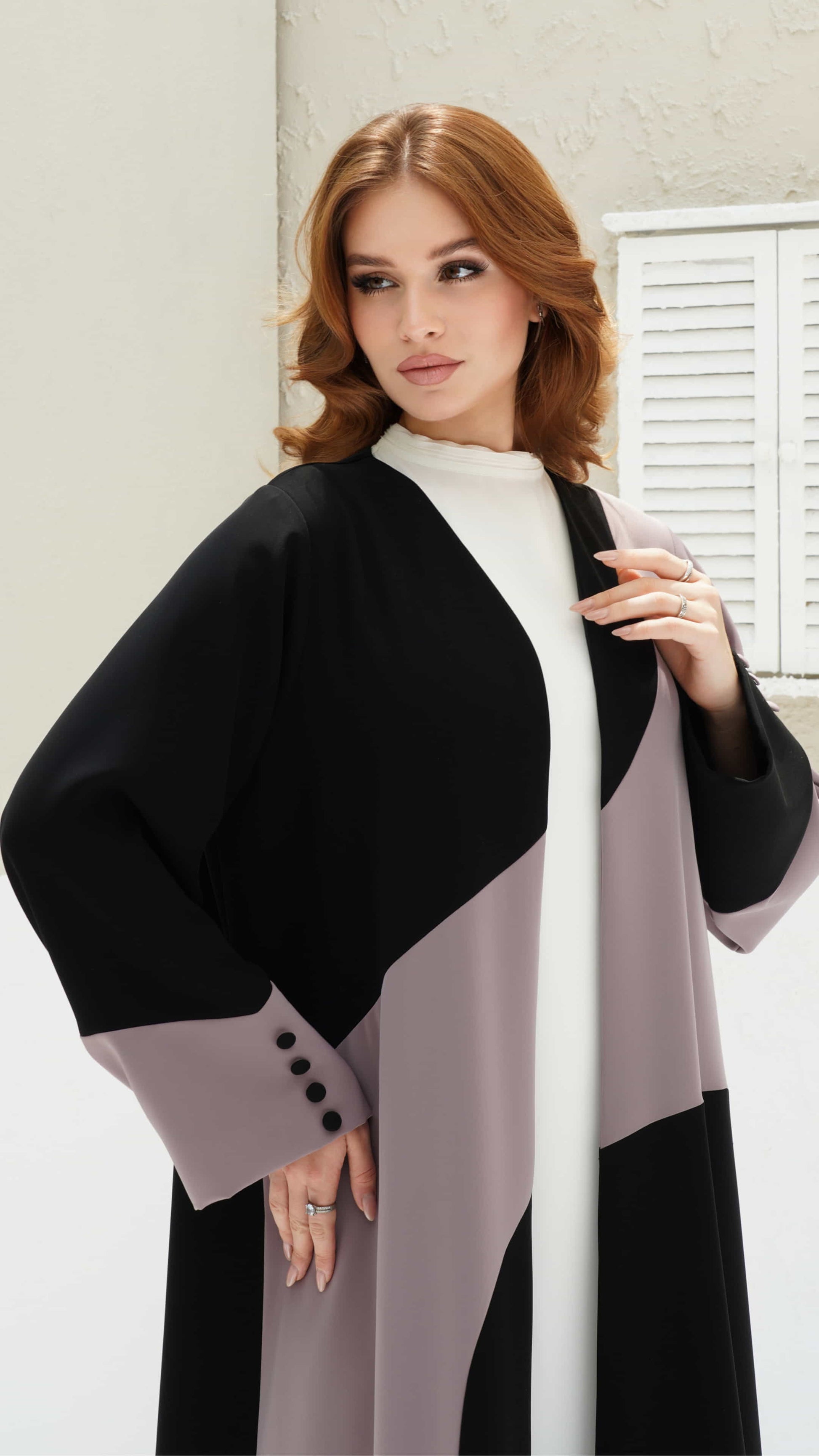 Kenza, is deliciously chic ✨ two-tone abaya boasting a graceful fusion of 🎀 mauve and black hues crafted with a bold flowing silhouette of effortless elegance. Two Tones. One Iconic Look. Discover the charm ⚜️ of everyday elegance with our latest drop.