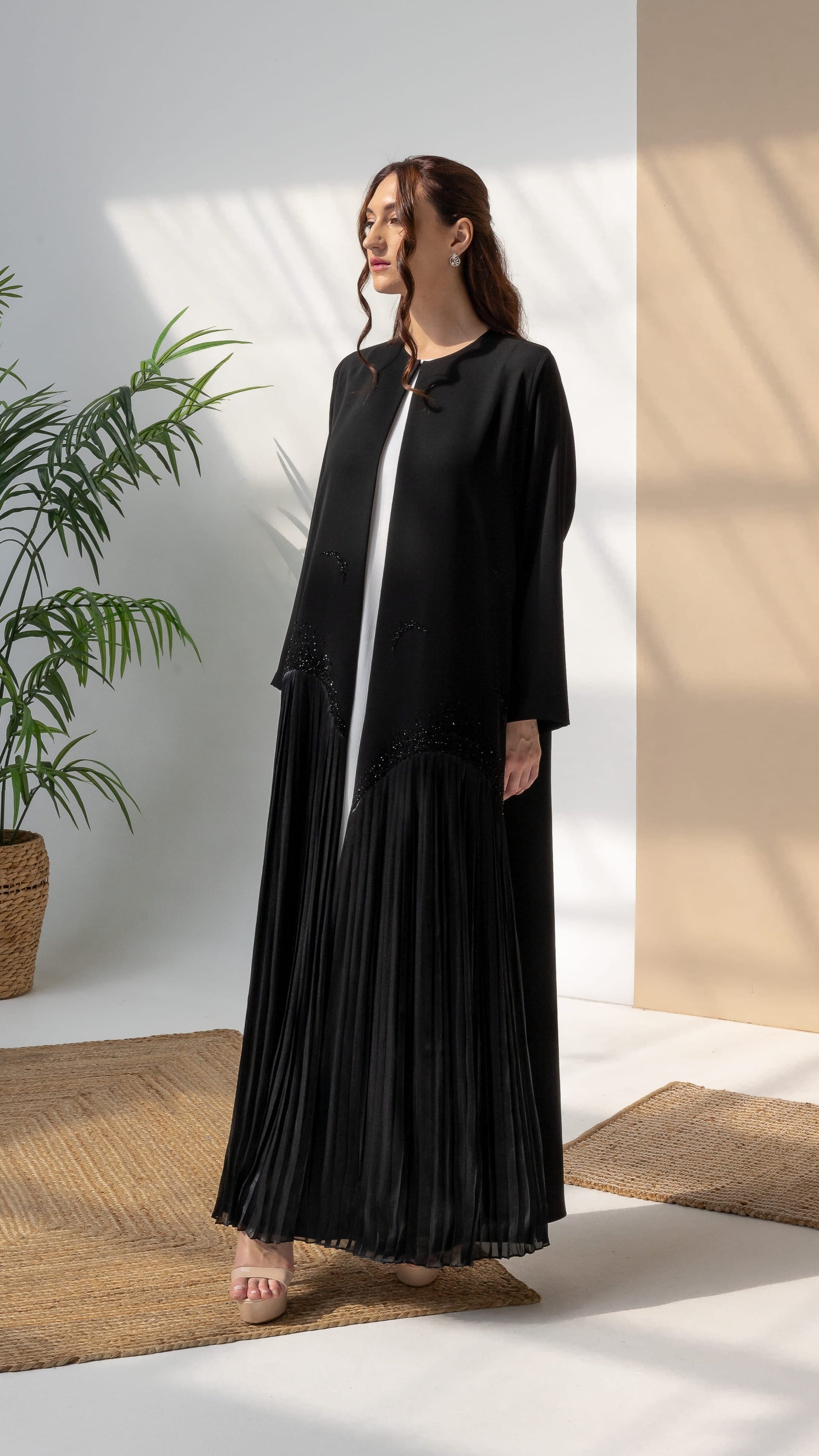 Mira Abaya embodies the essence of glamorous sophistication, offering a striking blend of rich black elegance and feminine charm