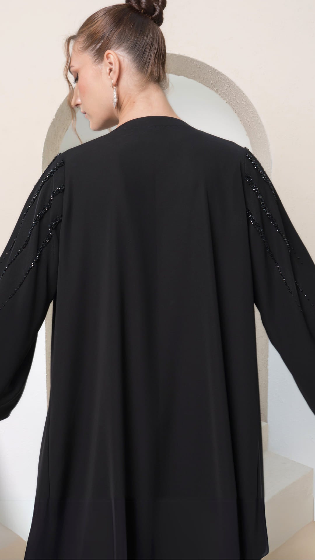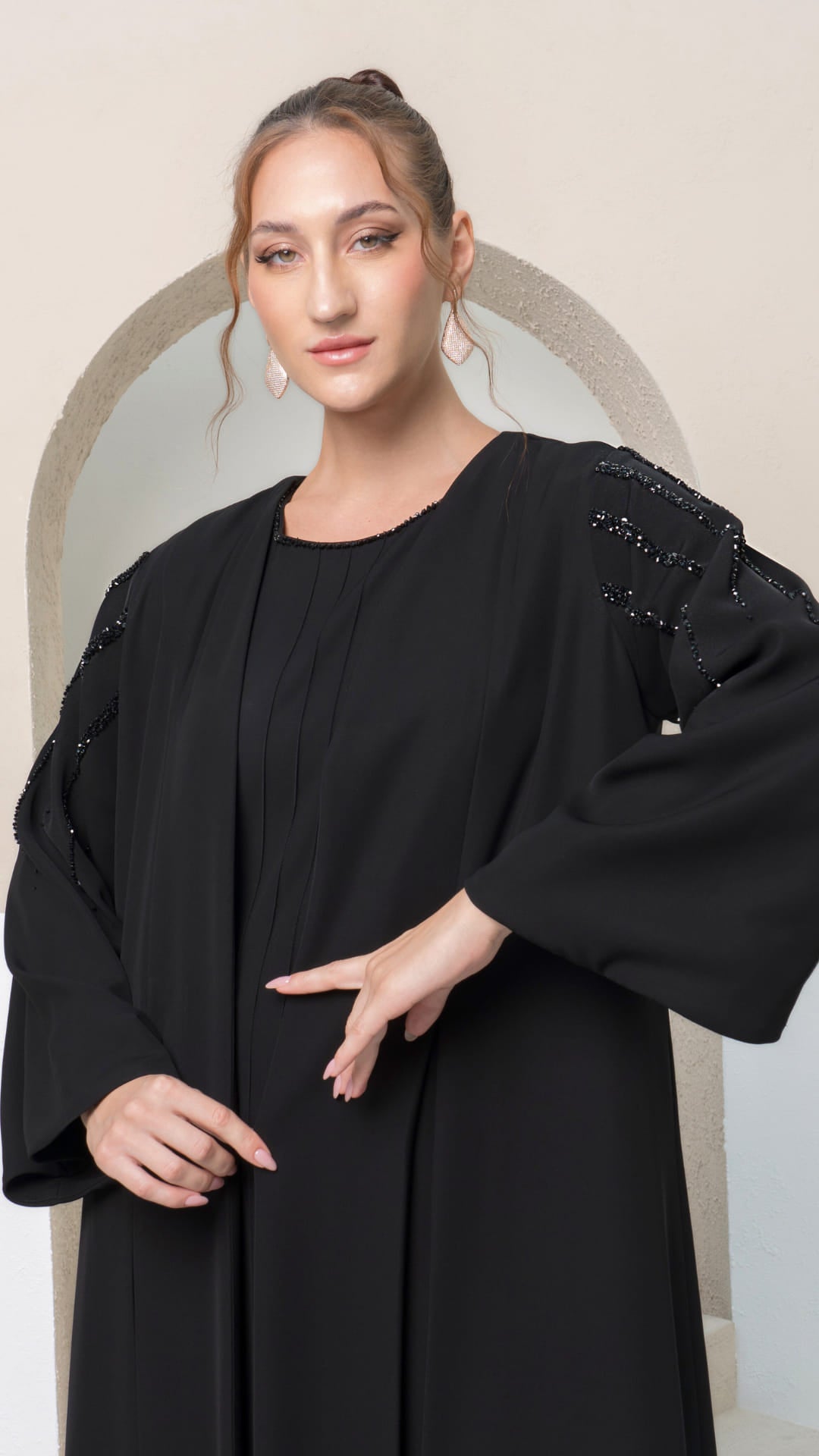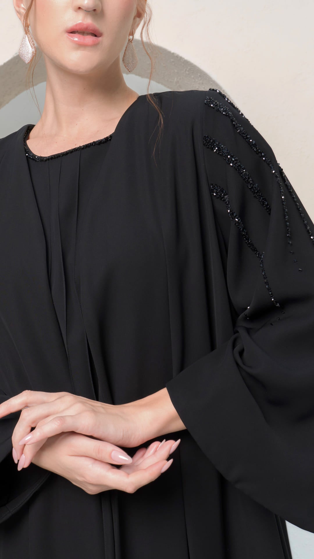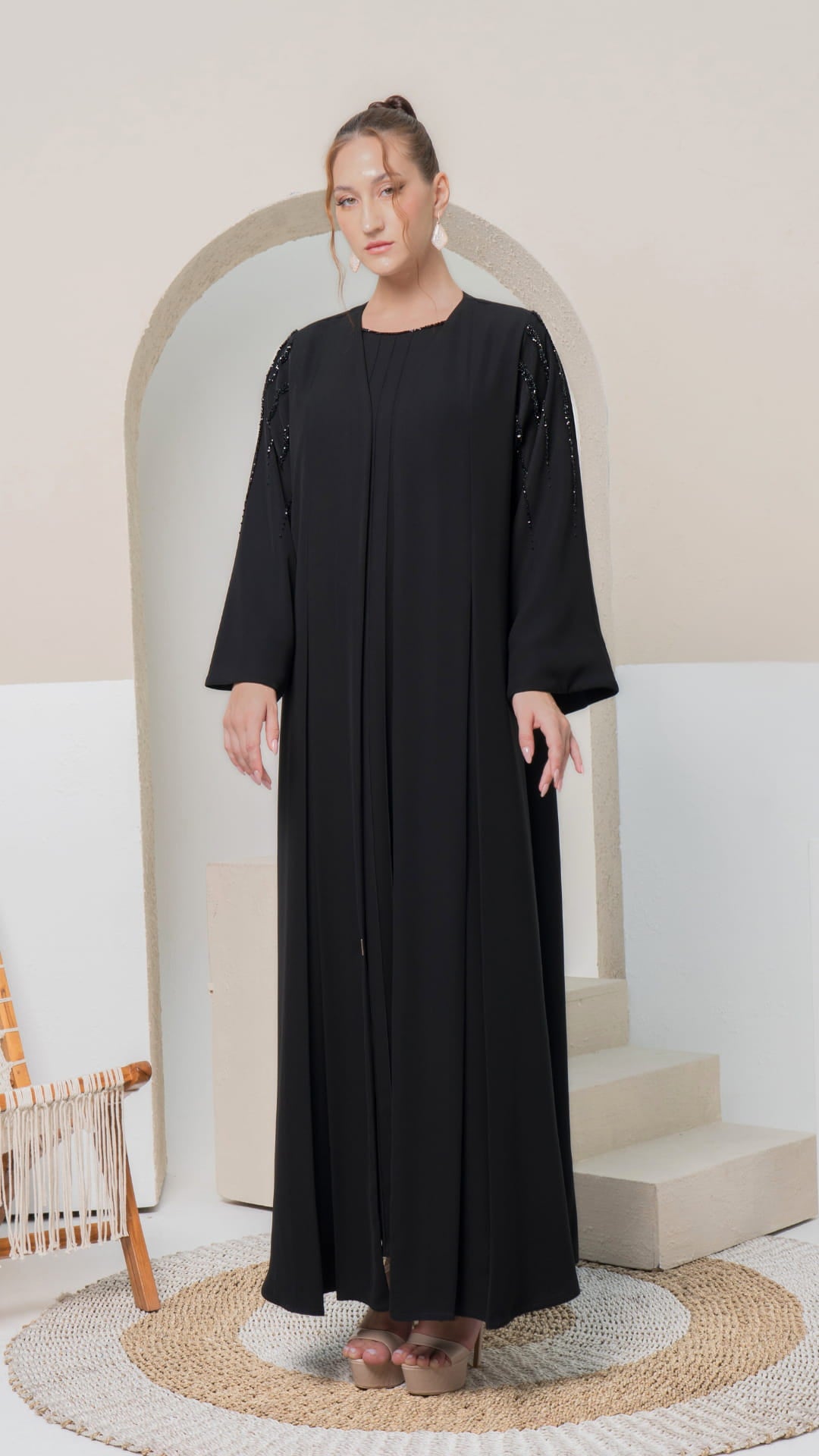 Step into a world of sheer opulence with Mona Abaya, a bespoke masterpiece, made with exceptional craftsmanship and attention to detail.