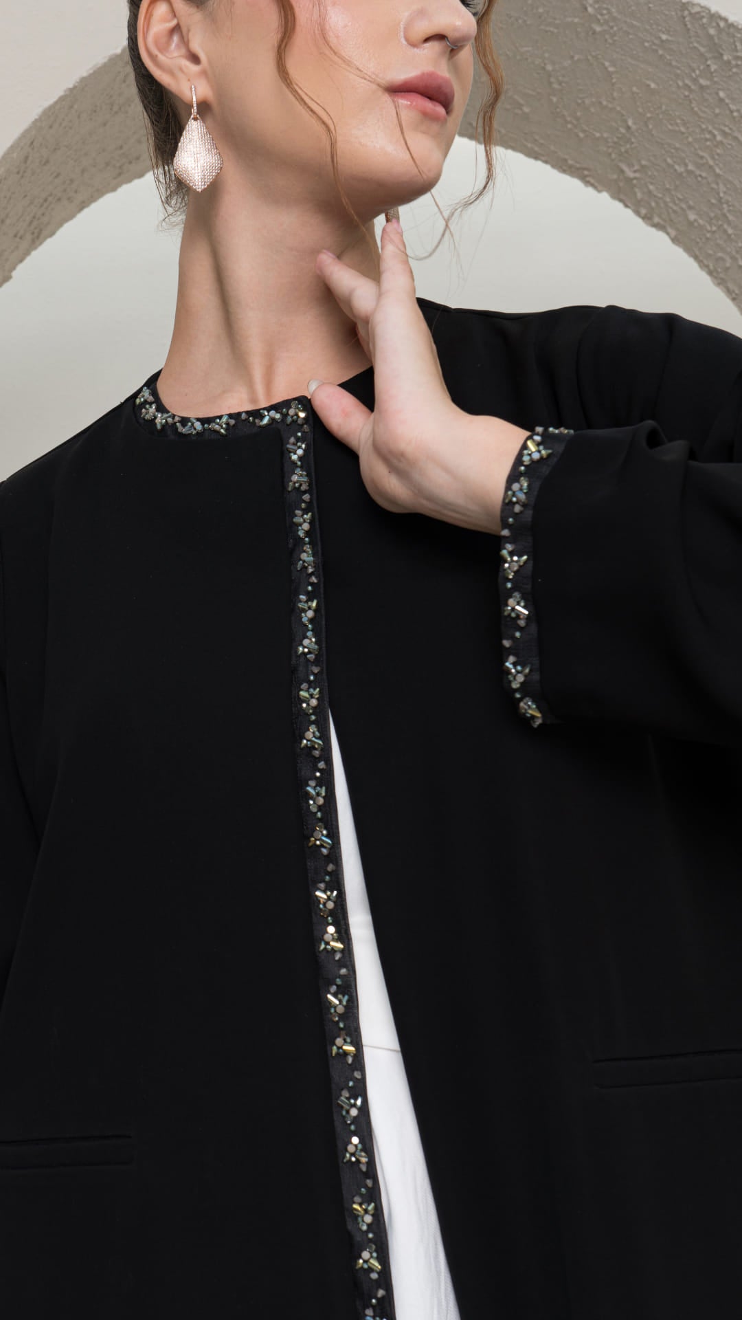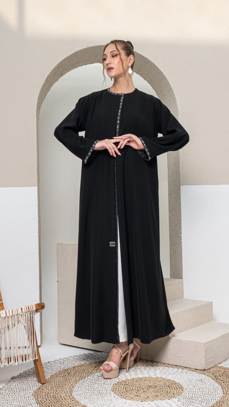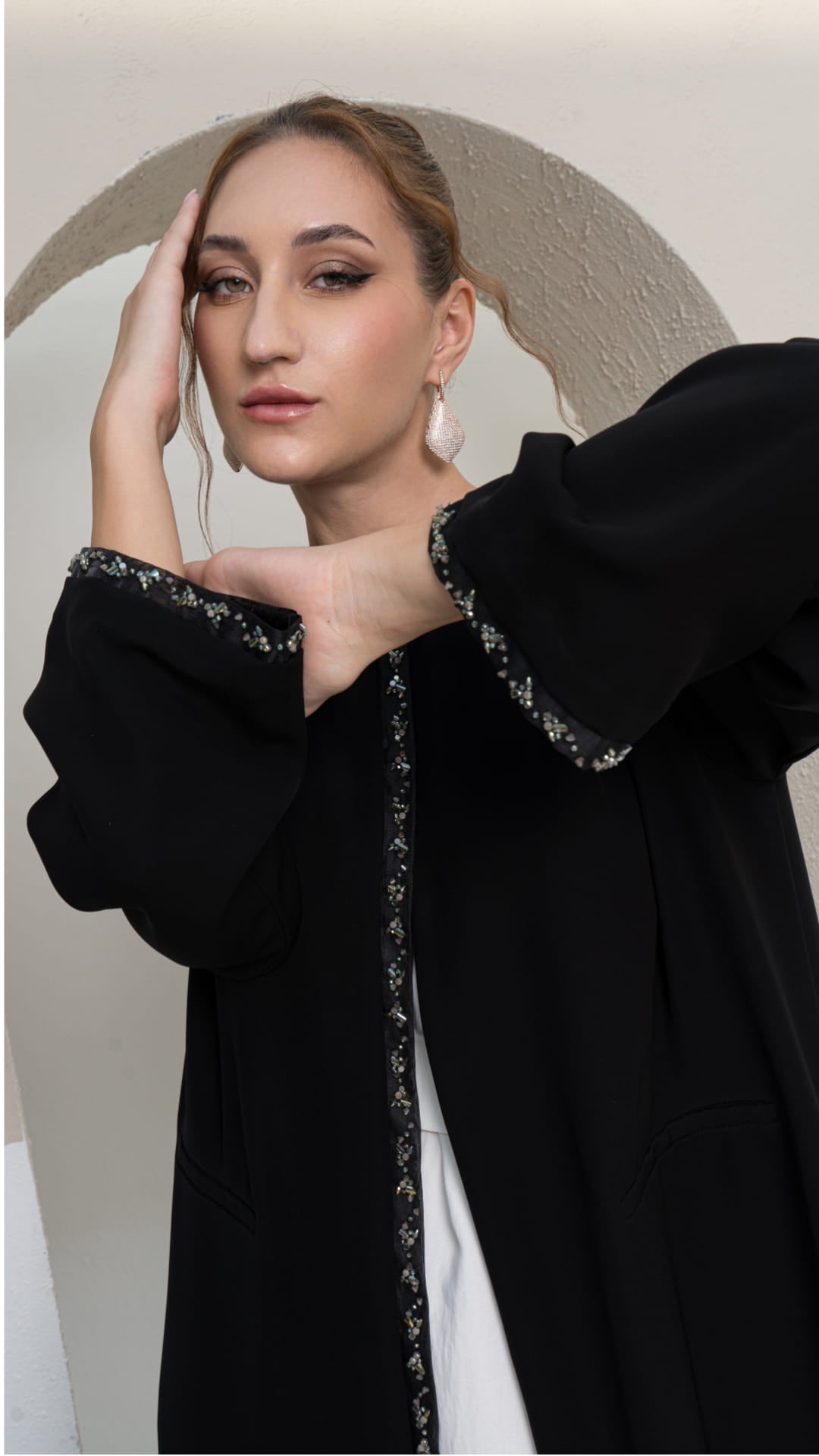 !عباية نوال هي عباية معاصرة تعيد تعريف الحداثة بلمعان أنيق. أضفي لمسة من الأناقة إلى خزانة ملابسك اليومية مع نوال وتألقي بأناقة