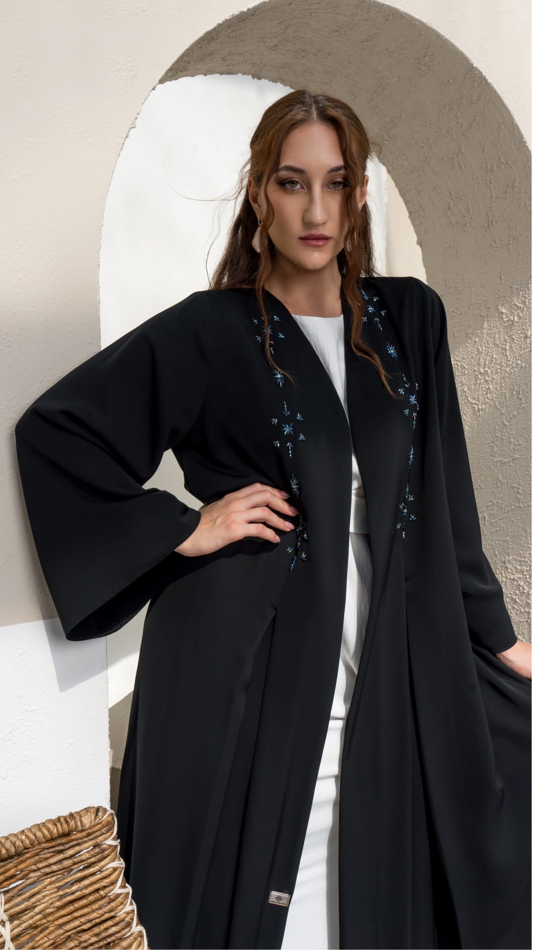 عباية سوداء كلاسيكية مثالية في مزيج مذهل من الجمال الخالد والسحر المعاصر، صُممت هذه العباية لتجعلك تتألقين دون عناء