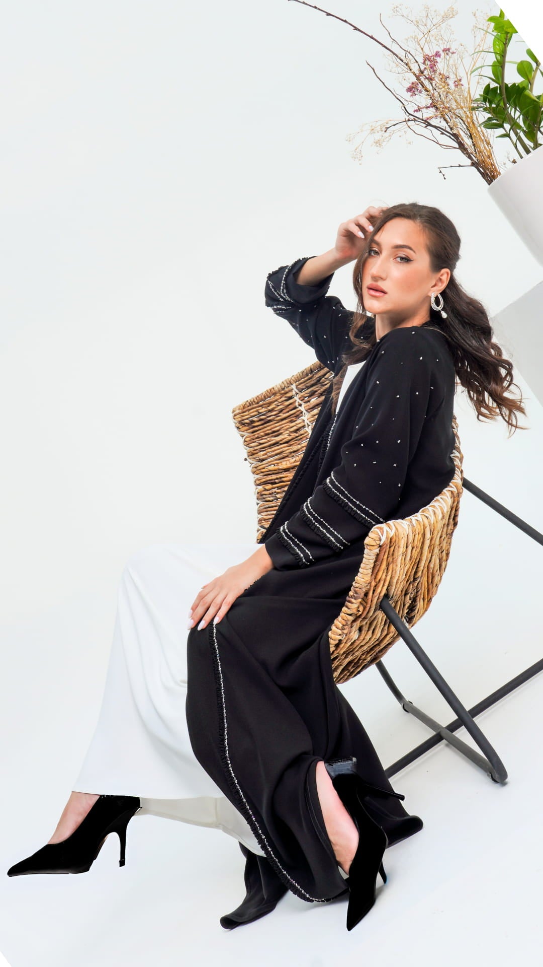 Immerse in our bespoke luxury abaya collections crafted from high quality fabrics...